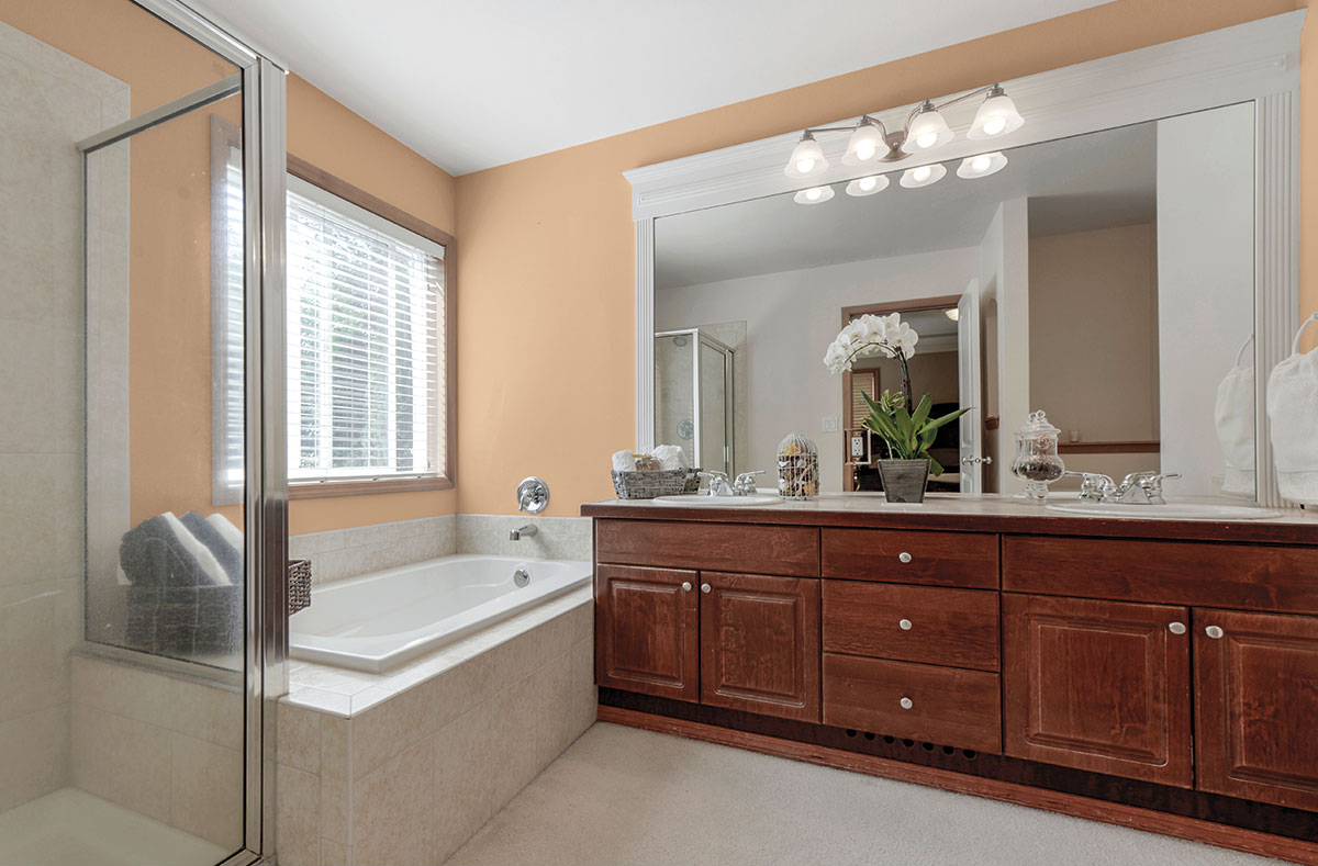 Volíme zde barvy, které neubírají prostor a vzdušnost. Koupelna je místnost, která musí být elegantní a funkční zároveň. Je považována za jednu z nejdůležitějších místností, snažíme se ji promyslet do nejmenších detailů. Pomocí vhodně zvolené barvy zde můžeme navodit např. pocit tepla (žlutá, oranžová), klidu (neutrální tóny), vzpomínky na moře (modrá, zelená, hnědozelená).